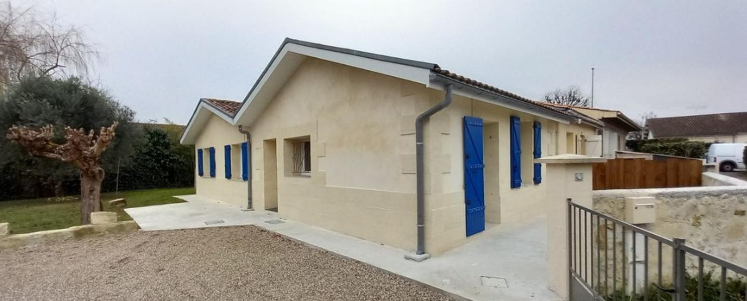 BLANQUEFORT, 1237 € charges comprises Maison T4 de plain pied Refaite à neuf 74 m2. Avec Terrasse + Jardin 300m2. Comprenant entrée, salon, cuisine Aménagée, 3 chambres,salle de bain, WC. Proche transports et commerces. Caution : 1 mois HC. Nous contacter LADP 05.56.04.04.04 fd 210€